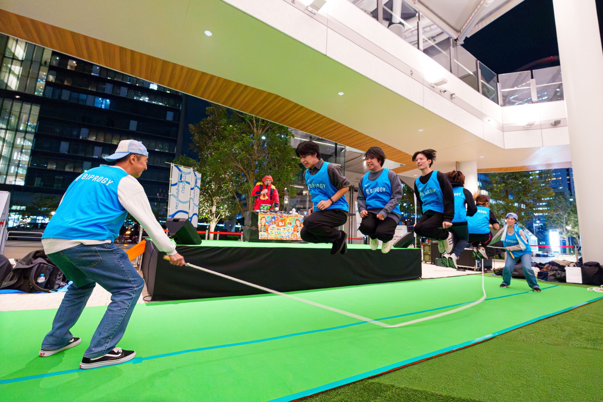 ▲華金の大屋根ひろばでは、企業対抗での大なわとび大会を開催。豊洲にゆかりのある大企業からスタートアップまで、合計7チームが出場しました。
